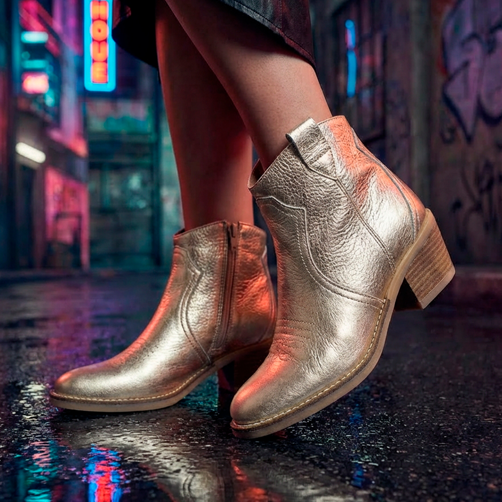 Sandra ankle boots – Made from gunmetal metallic cowhide, these ankle boots combine shine and elegance with a practical low-cut design and medium heel, providing maximum comfort and versatility to elevate your looks.
