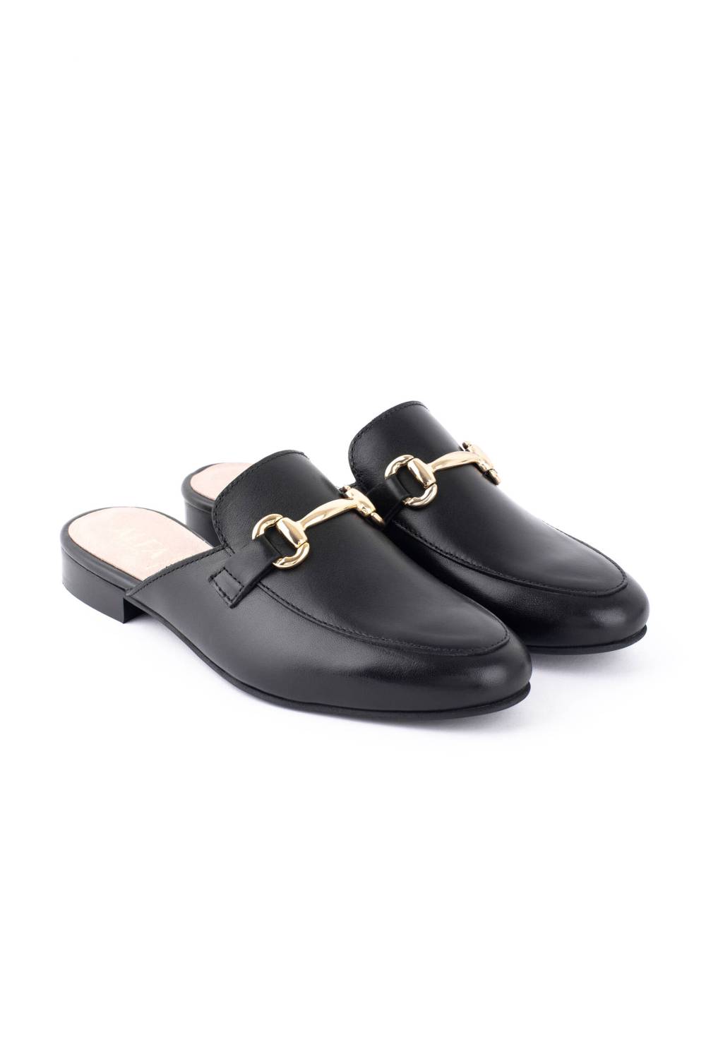 Com um design minimalista e sofisticado, destacado pelo detalhe metálico discreto, este mule feminino preto adapta-se facilmente a diferentes estilos — desde looks profissionais a combinações mais descontraídas — tornando-se um essencial no guarda-roupa feminino.