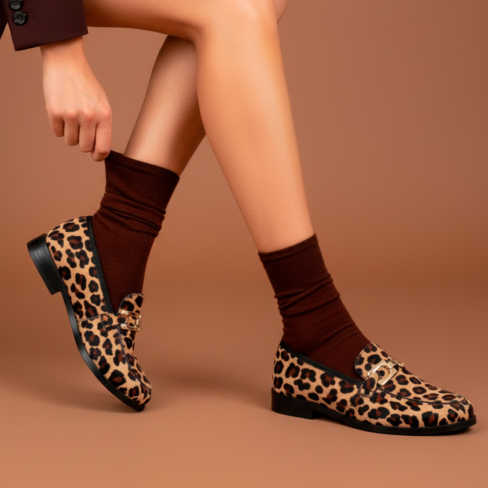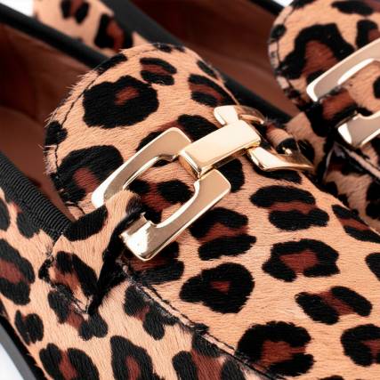 Inspirado no icónico Chanel, o Mocassim Penélope mantém a sua elegância e sofisticação, mas surge agora numa nova versão irresistível em pele com pelo leopardo, que adiciona um toque ousado e moderno aos seus looks.